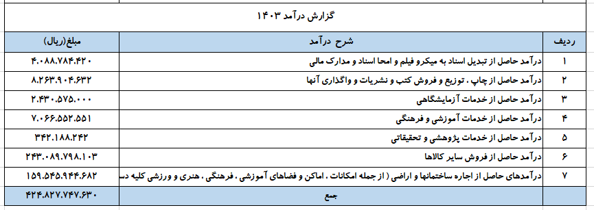 گزارش درآمد 1403